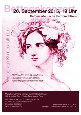 So, 20. Sep. 2015 19:00 Uhr - Bettagskonzert "Werke von Komponistinnen"Ref. Kirche Hombrechtikon