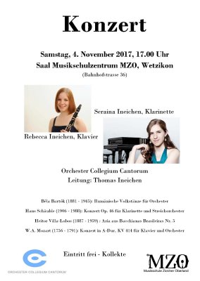 Solisten: Rebecca Ineichen, Klavier; Seraina Ineichen, Klarinette Werke von Wolfgang Johann Christian Bach, Wolfgang Amadeus Mozart und Carl Stamitz |