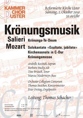 Sa, 02. Okt. 2010 20:00 Uhr - Krönungsmusik von Mozart und Salieri
