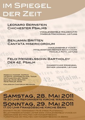 So, 29. Mai 2011 17:00 Uhr - Im Spiegel der ZeitKonzert für Solisten, Chor und OrchesterFranzösische Kirche Bern