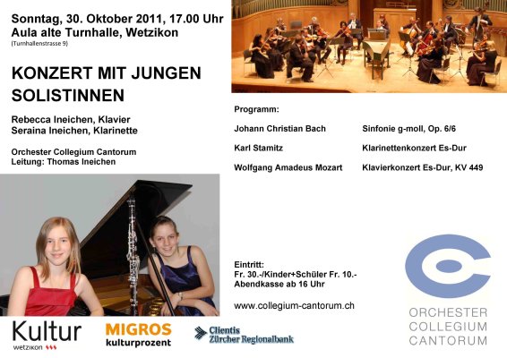 Solisten: Rebecca Ineichen, Klavier; Seraina Ineichen, Klarinette Werke von Wolfgang Johann Christian Bach, Wolfgang Amadeus Mozart und Carl Stamitz |