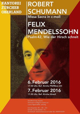 Sa, 06. Feb. 2016 17:00 Uhr - Kantorei ZO: Mendelssohn und SchumannRef. Kirche Pfäffikon ZH