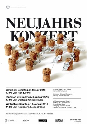 Di, 02. Jan. 2018 17:00 Uhr - Neujahrskonzert WetzikonRef. Kirche, Wetzikon Orchester Collegium Cantorum Wolfgang Amadeus Mozart: Sinfonie in D, KV 196 und KV 121