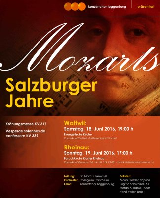 Sa, 18. Juni 2016 19:00 Uhr - Konzertchor Toggenburg: Mozarts Salzburger JahreEvangelische Kirche Wattwil