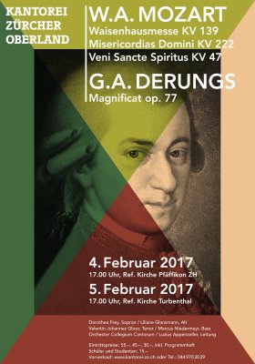 Sa, 04. Feb. 2017 17:00 Uhr - Kantorei ZO: Derungs und MozartRef. Kirche Pfäffikon ZH Kantorei Zürcher Oberland |