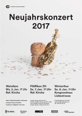 Sa, 06. Jan. 2018 17:00 Uhr - Neujahrskonzert PfäffikonRef. Kirche, Pfäffikon ZH Orchester Collegium Cantorum Wolfgang Amadeus Mozart: Sinfonie in D, KV 196 und KV 121
